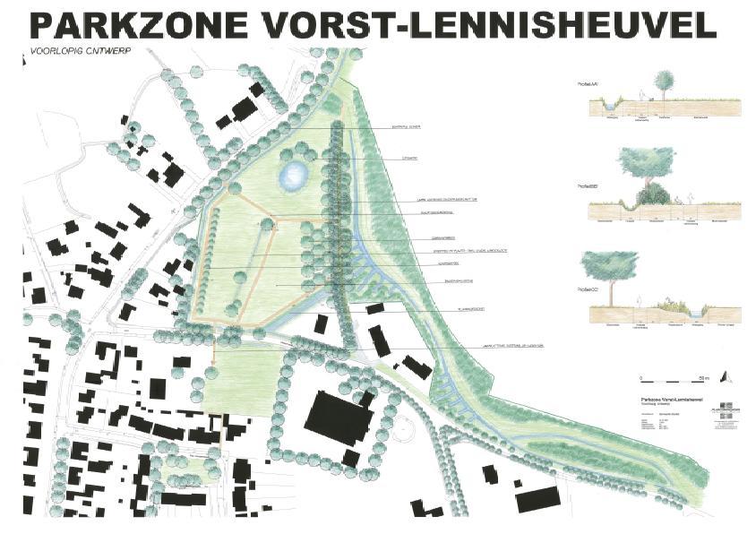 Daarna was het de beurt aan landschapsarchitect Bert Voeten van Plancompagnons om zijn visie op het park aan de Brede Heide uit de doeken te doen. In zijn optiek moet het een park worden met een relatief open structuur, passend bij het open karakter van het Lennisheuvelse buitengebied. Dus géén bos. Het plan van Voeten bestaat uit één grote bloemenweide met een aantal solitaire bomen. Langs de westrand staat een rij knotwilgen. Wandelpaden lopen rondom de zuidelijke helft van de bloemenweide. Er gaan ook drie paden het gebied in. Op het punt waar die bij elkaar komen wil CROL een ontmoetingsplaats.