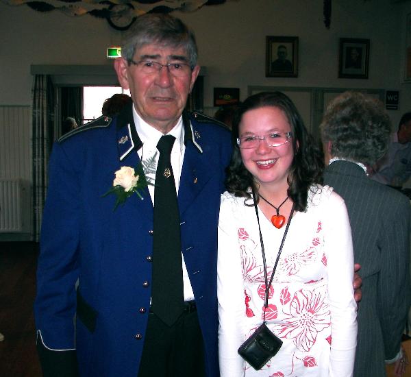 Het diamanten jubileum van fanfare St.Arnoldus is groots gevierd. Op de eerste dag zijn vier jubilarissen gehuldigd. Op de foto's beneden zien we achtereenvolgens: Toon van de Linden (60 jaar lid) met echtgenote Bea.